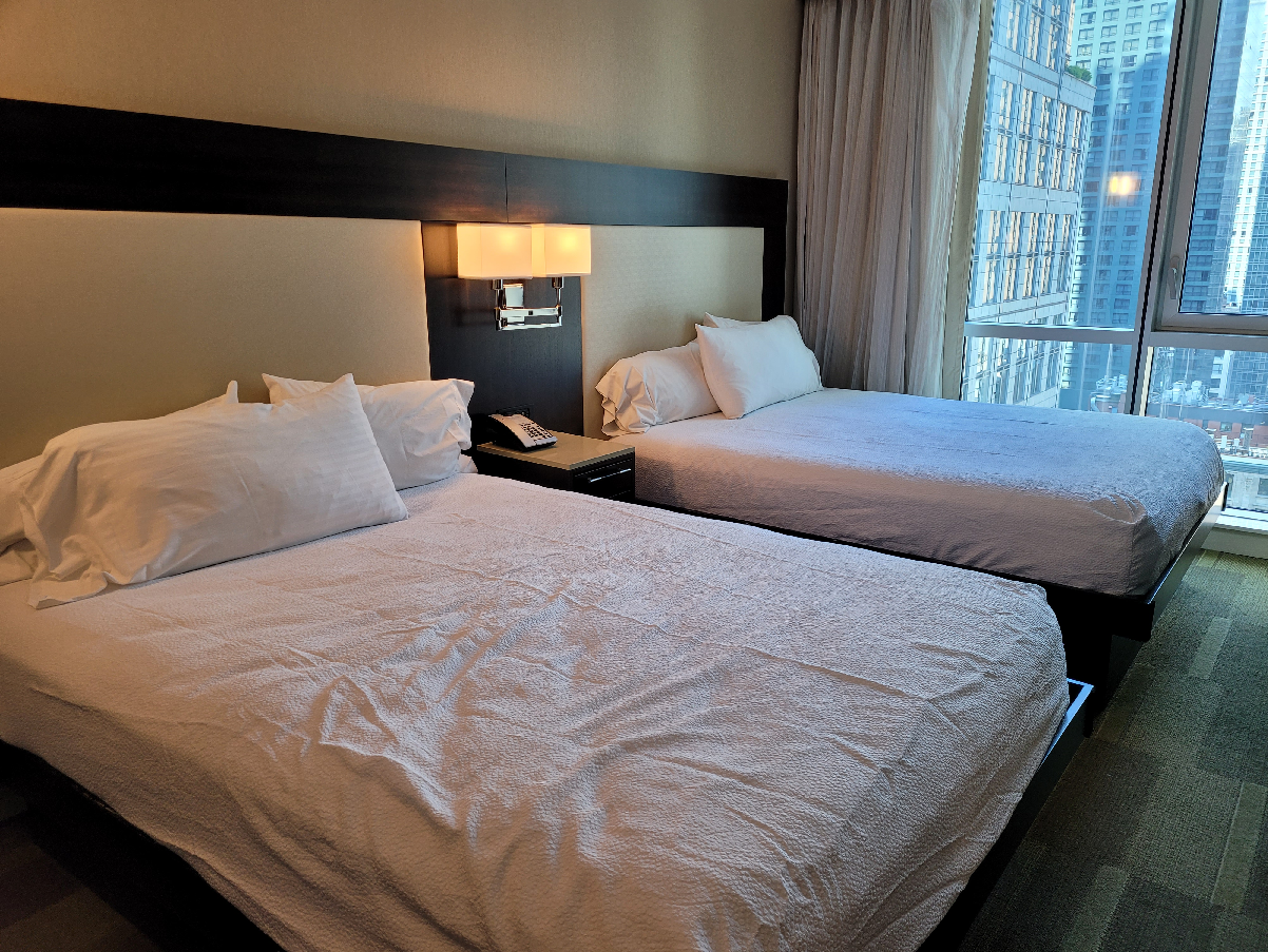 8일 중 2일은 오며 가는 비행기 안에서 보냈고 총 6일을 뉴욕에서 숙박했는데, 2일은 지인집에서 머물고 총 4박을 호텔에서 지냈습니다. 4일 동안 호텔 2군데에 묵었는데, 짧은 기간임에도 호텔을 바꾼 이유는 호텔이 마음에 들지 않을 경우 여행 내내 기분이 좋지 않아 실패확률을 줄이기 위해 2군데 호텔을 예약했습니다.