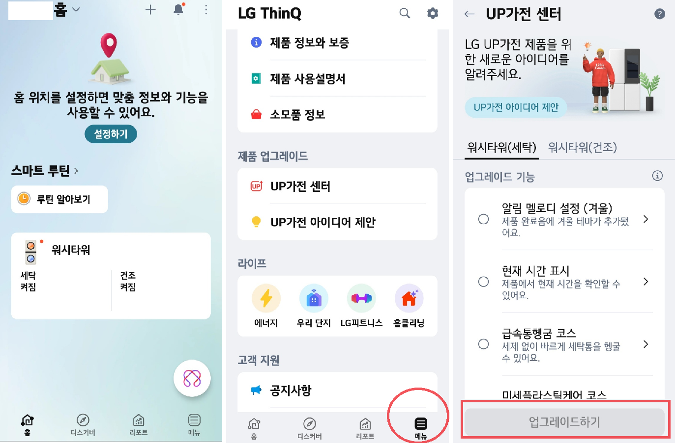 업그레이를 마친 후, 세탁 후의 반복되는 멜로디 소음이 멈추었습니다. 세탁 마침을 알리는 멜로디가 업그레이드가 되지 않아 오류가 난 것으로 확인되었습니다. 동일한 현상이 있을 시, 고객센터에 AS 접수하지 말고, 간편하게 ThinkQ 업그레이드하여 해결해 보세요.