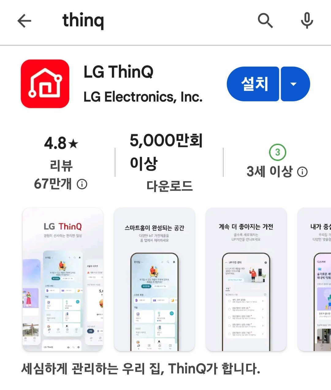 LG전자 기기를 컨트롤 할 수 있는 ThinQ 앱을 다운로드하고 업데이트하면 되는 것이었습니다.