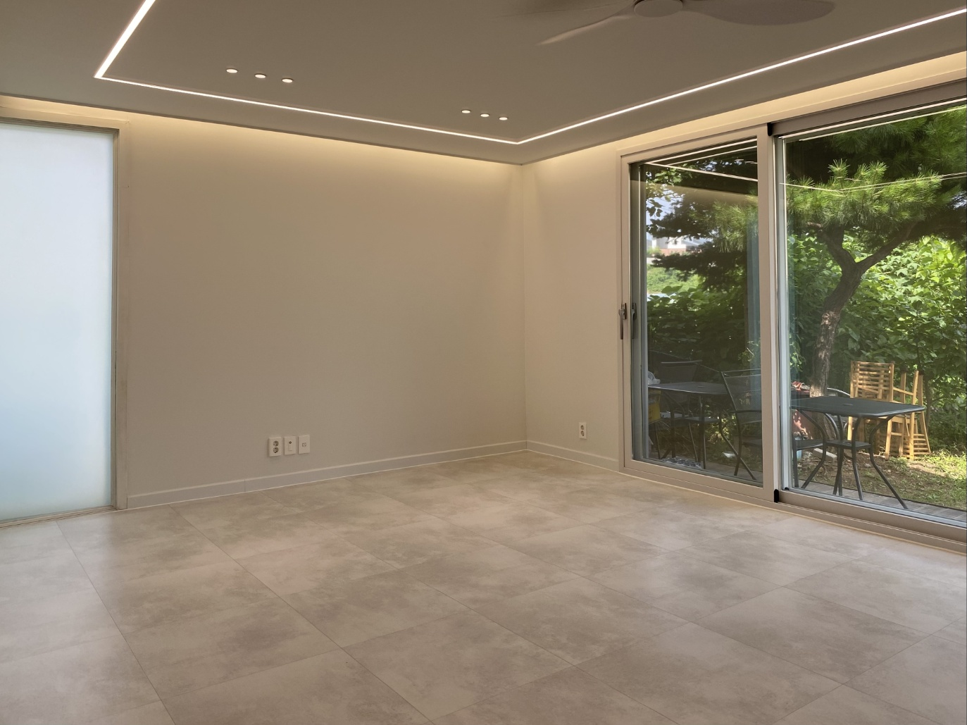 거실은 가족들이 가장 많이 사용하는 공간으로 조명이 중요한 영향을 미칩니다. 샹들리에 또는 포인트등으로 디자인적인 요소를 가미한 조명을 사용하면 거실이 환해질 수 있습니다. 거실에 많이 시공했던 우물천장은 트렌드가 좀 지난 느낌으로 최근에는 대부분 라인등 및 간접등과 포인트 등으로 시공하는 추세입니다.