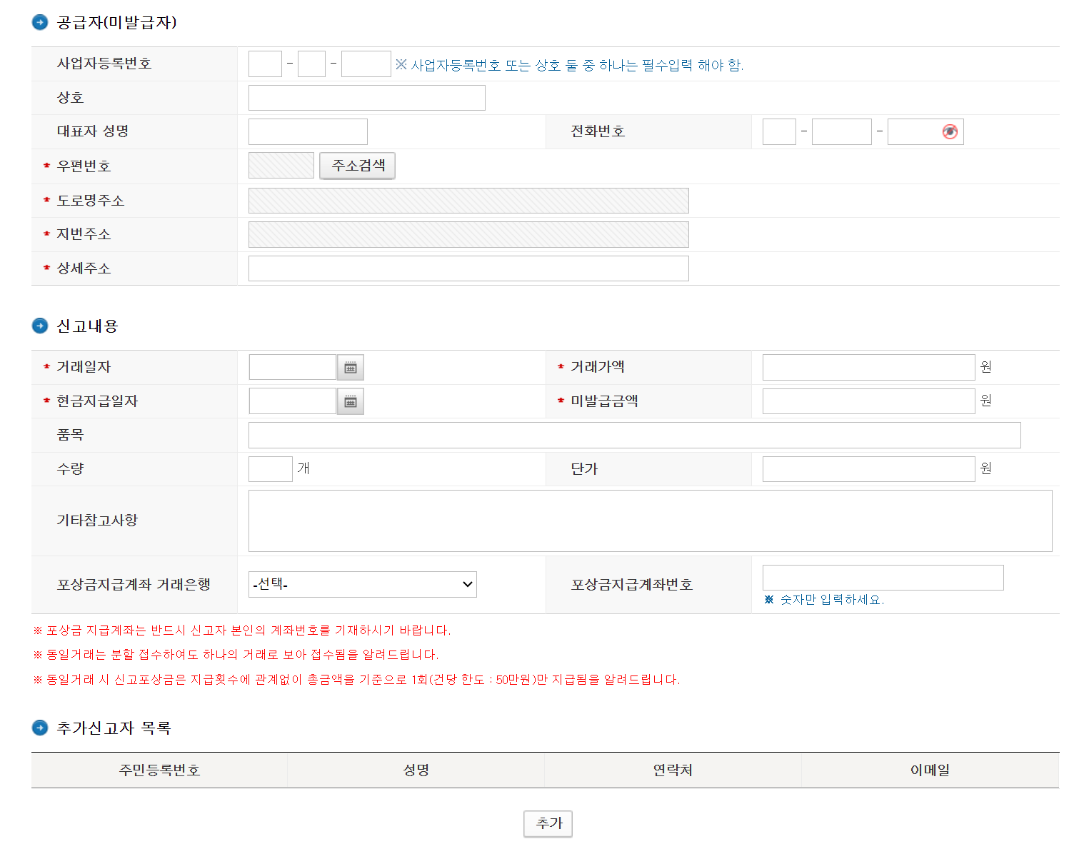 5) 신고자 인적사항과 신고할 업체의 정보 등이 필요합니다.